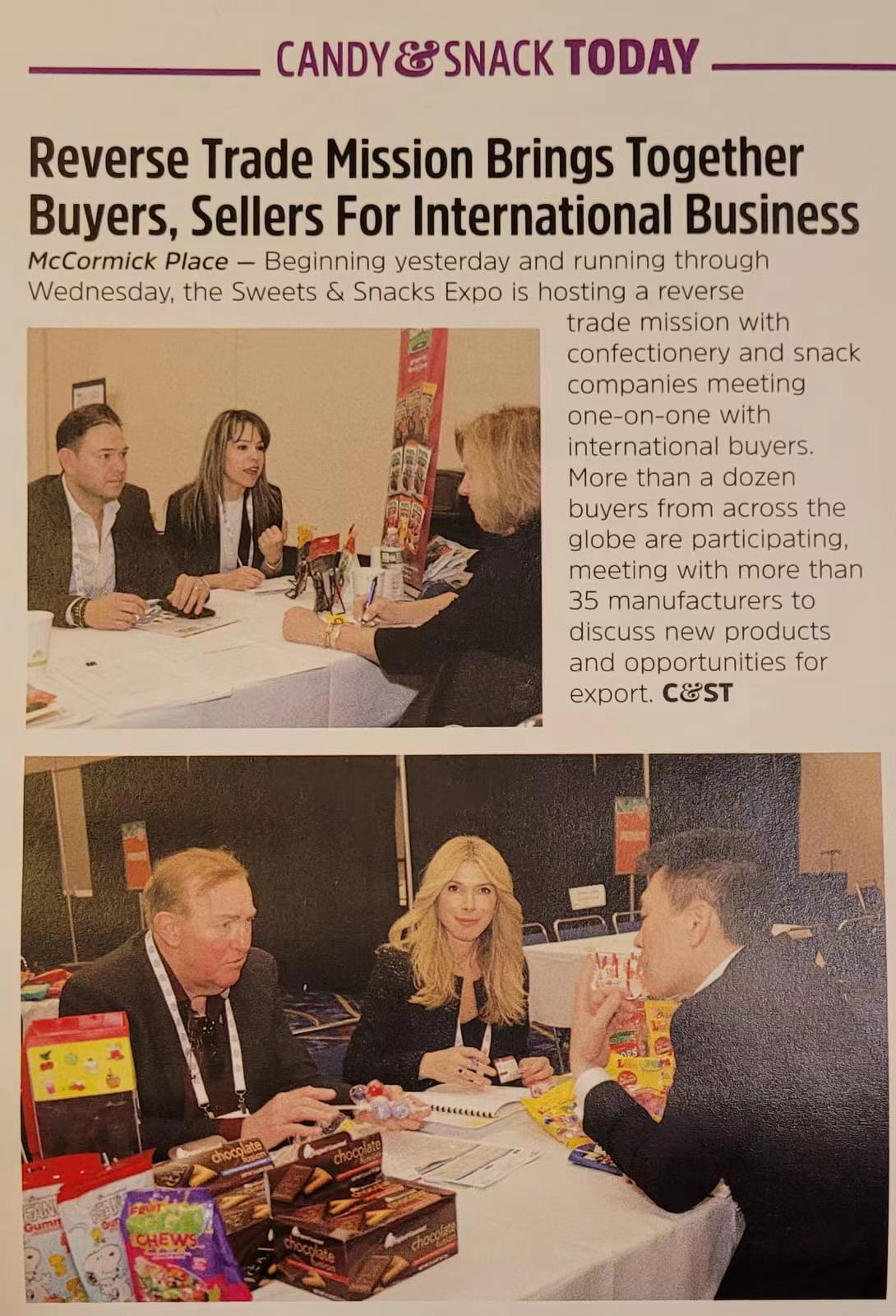 2023年5月,成都市思味思我国际贸易有限公司总经理李军宏先生跨洋前往美国芝加哥参加"Chicago 2023 Sweets & Snacks Expo"展会。同期,美国农贸部邀请思味思我(中国大陆唯一受邀公司)参加"Sweets & Snacks Buyers Mission May 2023"一对一交流会。展会期间,李总与多家厂家进行现场交流、洽谈业务,让我们期待这次国际展会带来的更多商机和合作!