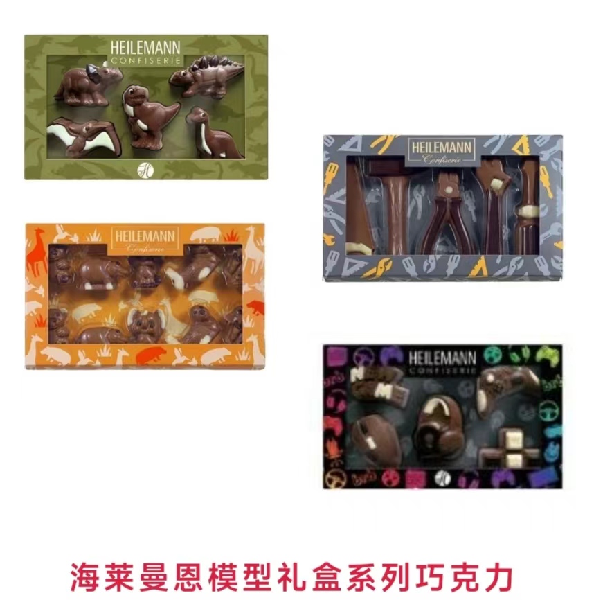 巧克力作为一种塑造性特别强的食材,在巧克力大师手中也能变化成各种不同的造型。德国的海莱曼恩的造型系列巧克力完美的诠释了这点。造型各异的恐龙,动物,工具,甚至是电竞外设都是由巧克力制成的。这一系列一经推出就受到了全世界小朋友和年轻人的喜爱。