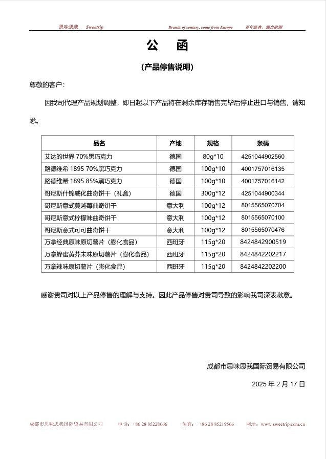 CopyRight © 2026 成都市思味思我国际贸易有限公司 All rights reserved by www.sweetrip.com.cn