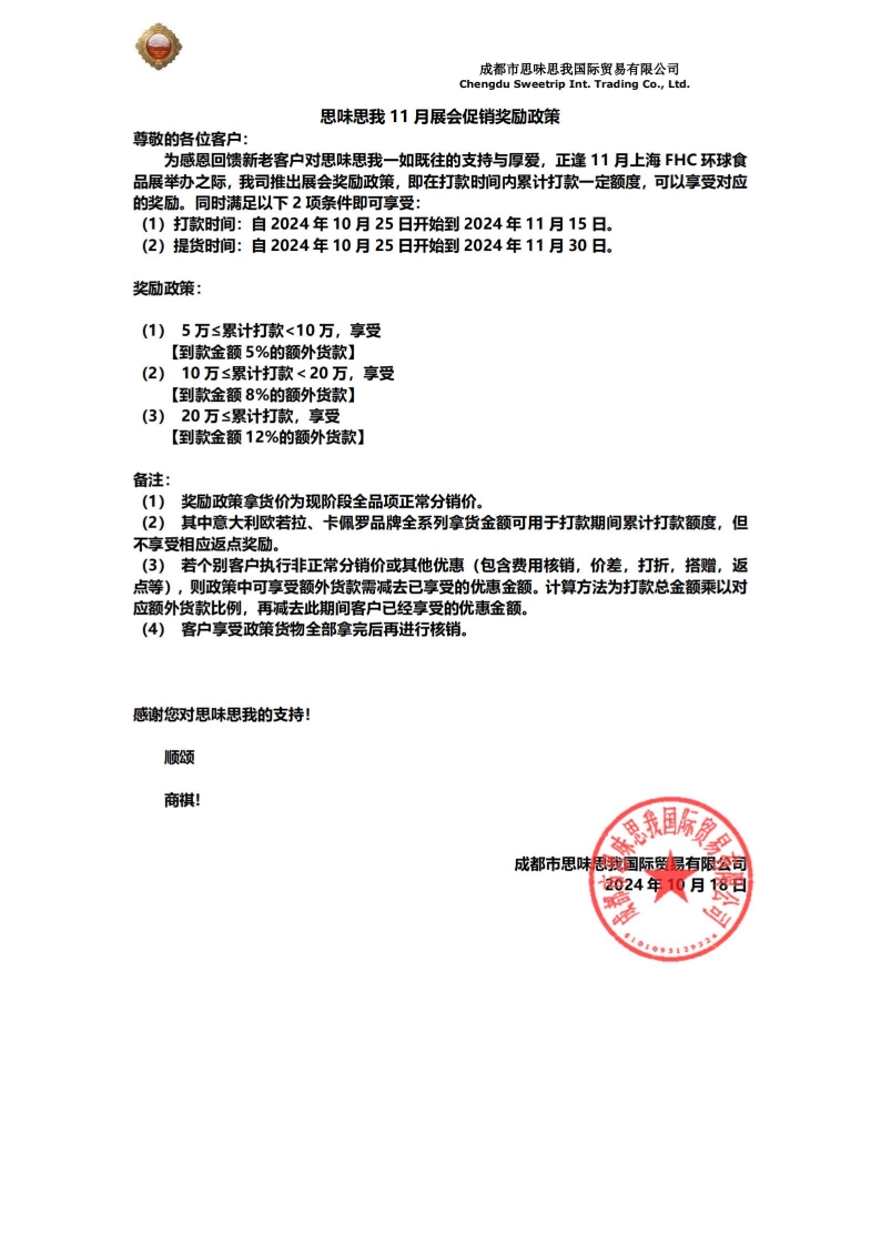 CopyRight © 2026 成都市思味思我国际贸易有限公司 All rights reserved by www.sweetrip.com.cn
